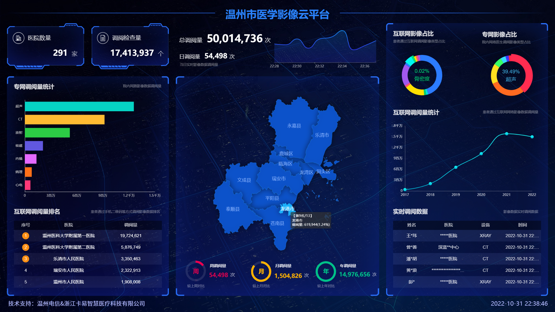 浙江省內(nèi)最大云影像平臺(tái) 日均移動(dòng)調(diào)閱量7.5萬(wàn)次 平臺(tái)總調(diào)閱量超過(guò)一億次 2018年浙江省醫(yī)療衛(wèi)生服務(wù)領(lǐng)域“最多跑一次”改革十佳案例(影像云唯一)